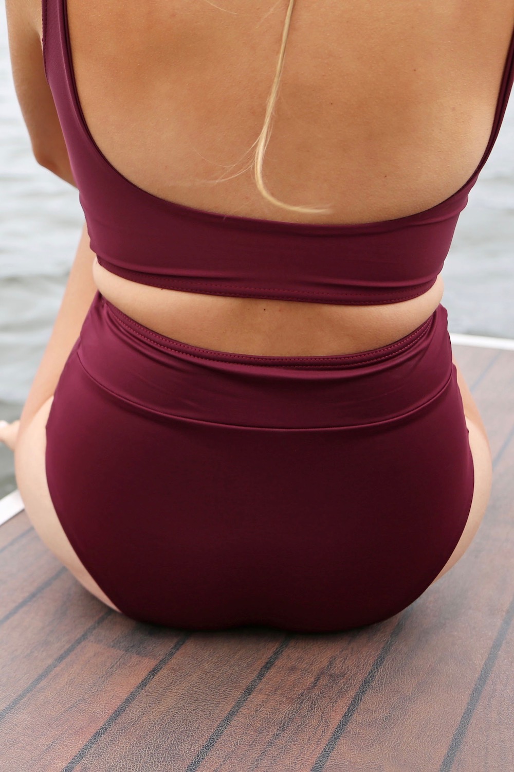 2. Sporty High-Waisted Bikini Bottoms: High-waisted bottoms with a high cut leg. Has sporty-like seam details.