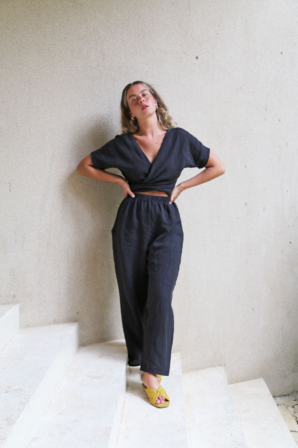 Take a look at these maternity-friendly HDH pieces! Our HDH Basics: Reversible Tank Jumper is made from a stretchier ribbed material that has more give and works well with a growing belly. The HDH Basics: Easy Jacket can be worn over a belly of any size and quickly elevates any outfit. Our Long Sleeve Tiered Dress and HDH Basics: Reversible Wrap Dress both have a roomier bodice and skirt that accommodate a changing body and their linen fabrics are guaranteed to keep you feeling cool – so important if you find yourself super pregnant in the summer like I did! Tie the included sashes a little tighter for a more fitted look post-pregnancy.