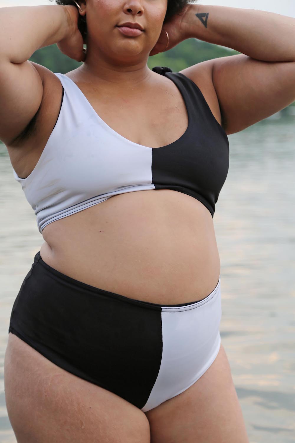 6. Two-Tone High-Waisted Bottoms: High-waisted bottoms with color block pattern.